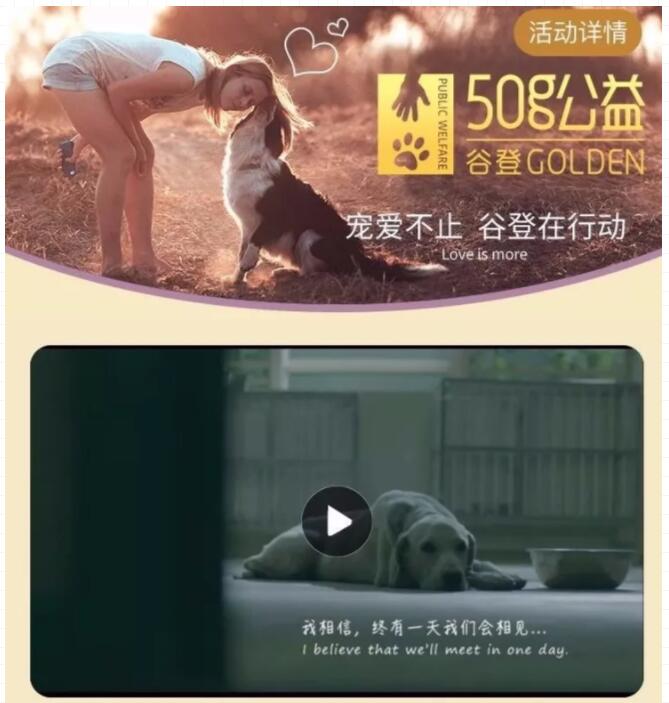 “所有生命都具有同样的价值”,原每一个善良的您都能够与谷登GOLDEN一起,关爱流浪小动物,支持“50g公益”活动,我们需要您!