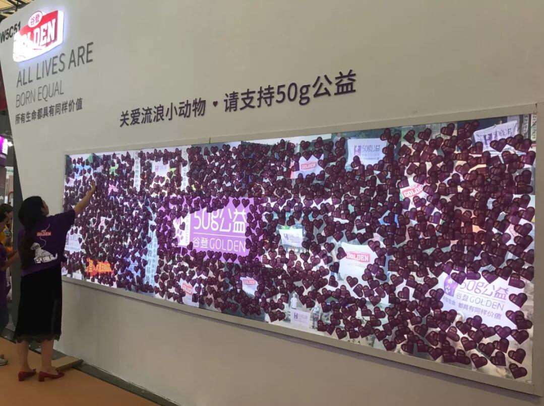 此次亚宠展“50g公益”也来到了现场。现场宠物爱好者们纷纷驻足观看"50g公益”活动展示墙,了解并留言写下了对流浪动物、对“50g公益”的美好祝福。