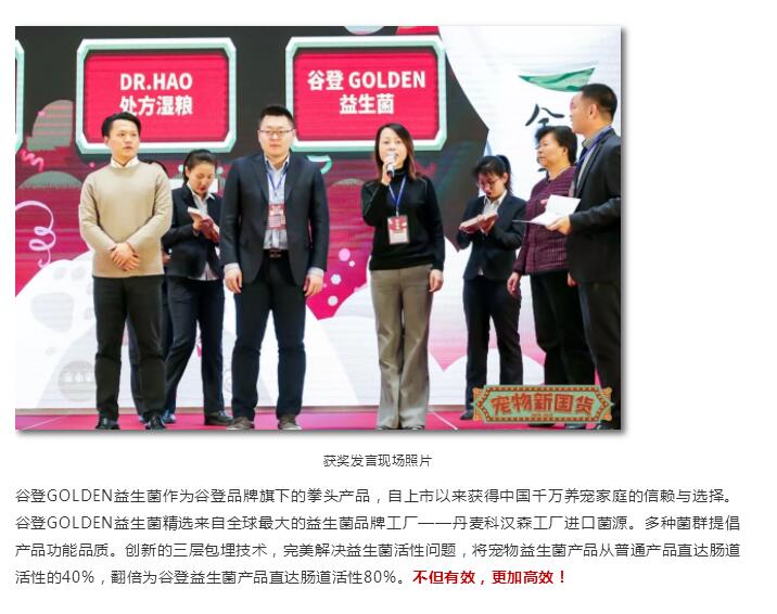 祝贺谷登益生菌荣获中国首届宠物新国货—“年度创新产品”大奖