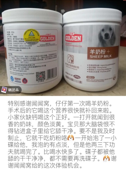 近期,在闻闻窝宠物社区举办的谷登羊奶粉试吃活动得到了众多狗狗家长的支持,下面给大家看一下其中一名家长的记录情况吧: